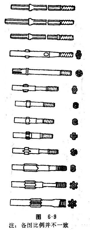釬尾是聯結鑿巖機和釬桿的橋梁,是釬子插入鑿巖機的部分,它直接承受鑿巖機的沖擊能和回轉扭矩,并把其能量傳遞給釬具。從使用形式上,可把釬尾分為兩種類型,即一種是與釬桿連成一體的(參見圖6-1),一種是接桿···